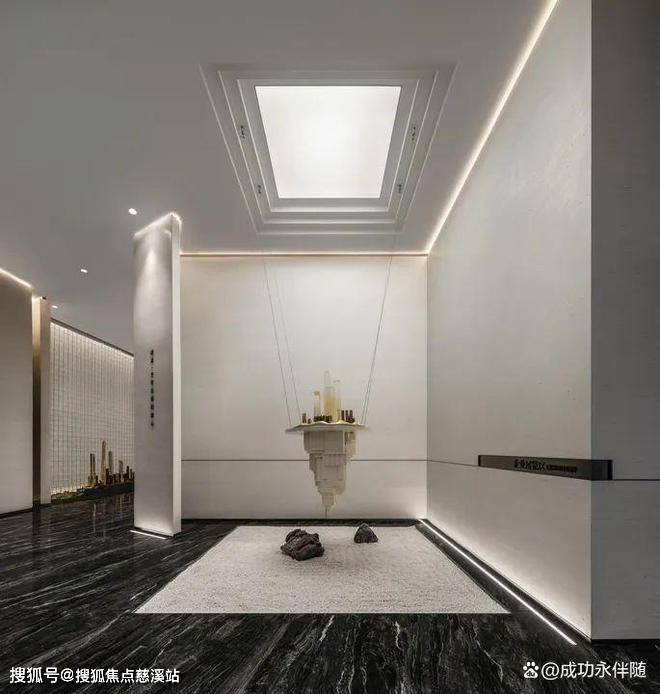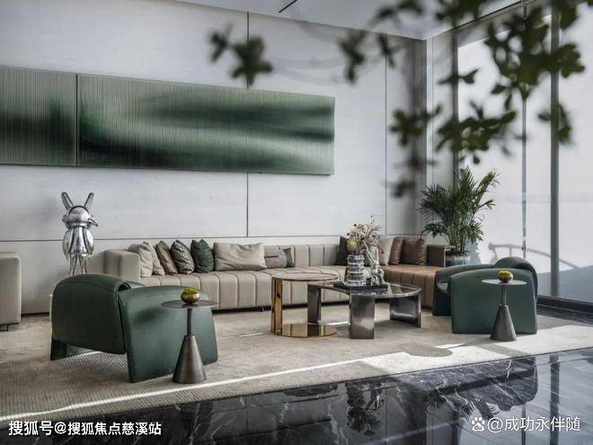 项目运用大理石、不锈钢,夹丝艺术玻璃等材质;黑灰、米白和墨绿的配色,营造简洁、高雅的艺术气质。