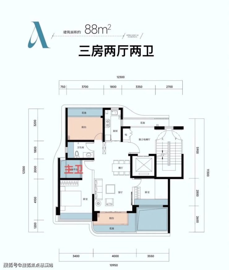 88平使用面积95-105平三房两卫
