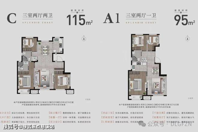 主售产品:1#、4#:95㎡,17-18层顶,一梯两户,三个单元,三室两厅一卫。
