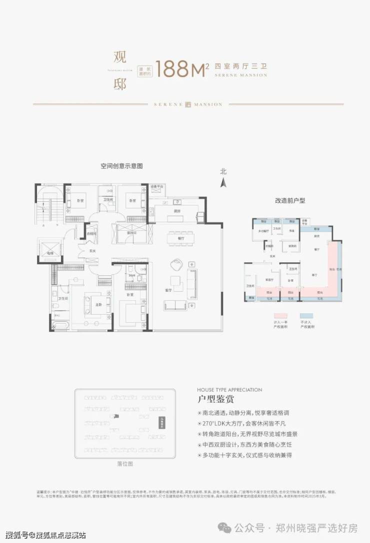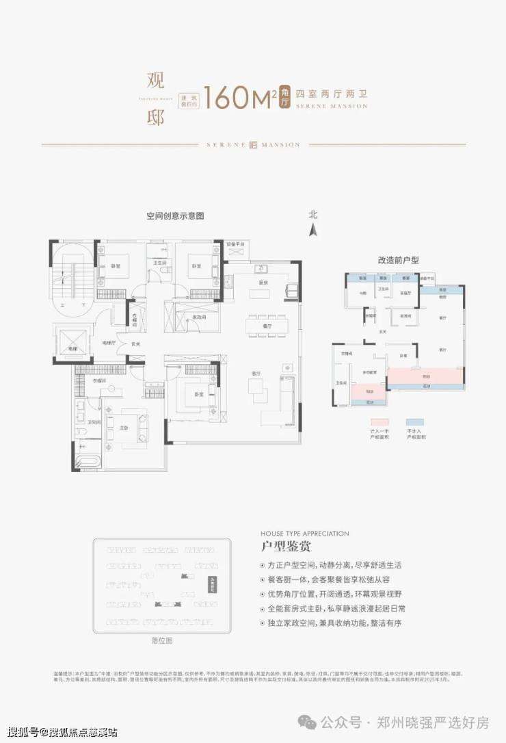 中建·泊悦府项目作为中建方程坚定扎根郑州市高新区的第三个房地产开发项目,将依托中建方程“府”系产品标准,积极落实住建部“好房子”标准,实现全户型超100%得房率,全系户型层高均在3米以上。项目以高窗比铝板幕墙系统、全楼宇静音系统、山水东方五感园林系统、全龄休闲度假会所系统、高净值MAX扩展系统、智慧社区全触点系统、精匠品控管理系统、双动线归家系统、星级物业服务系统实现九大创新。