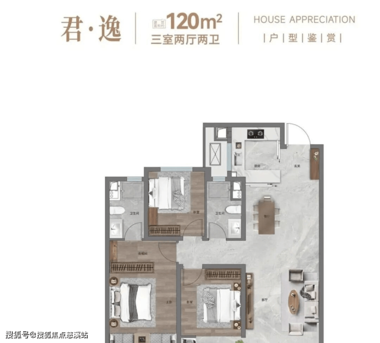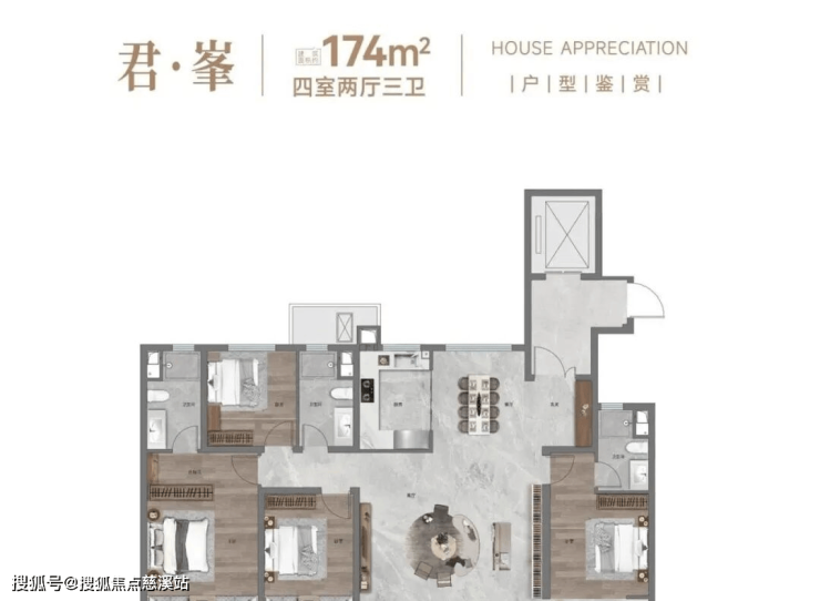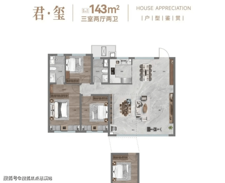 143户型值得单独说一下。现在买房更讲究长期主义,轻易不换房,这也意味着一套房子要满足家庭更长周期的需求。143户型打造了3+X空间,可以有约7米横厅,未来也能轻松多出一间卧室/功能房间。对注重功能性的购房者来说,再合适不过。