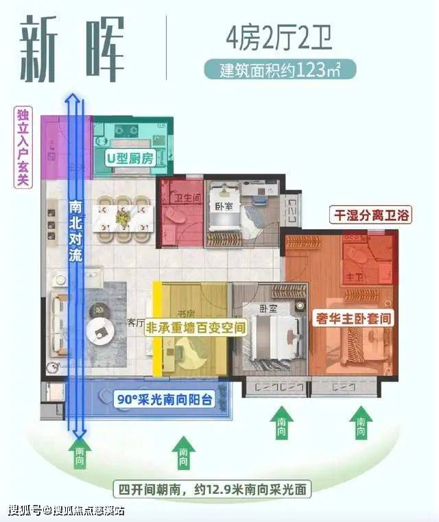 朝南通透大格局,满足三代同堂需求;