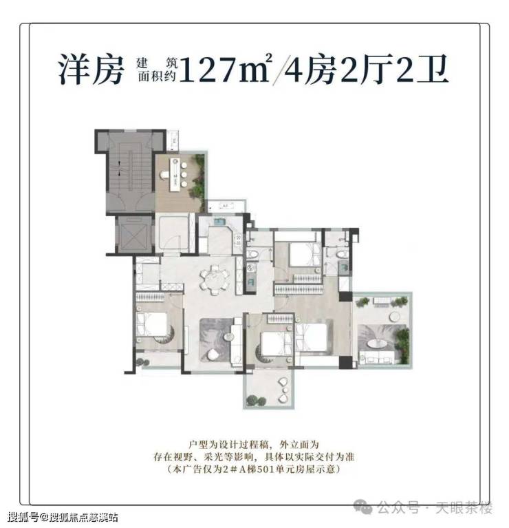 对比市场四代洋房产品,鲤悦三期建面约 127㎡第四代洋房直接把产品力拉到天花板,堪称第四代洋房界的 “六边形战士”! 以2#A梯501为例:
