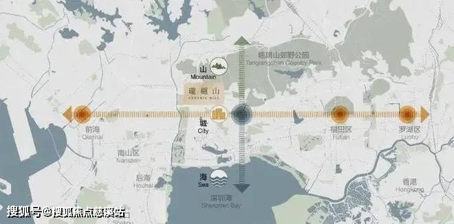 中心区域:深圳山海城中轴,左手香蜜湖、右手华侨城,六大总部基地环伺