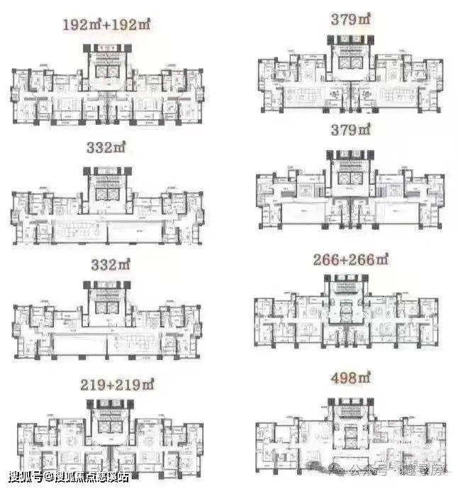 先看看这户型,清一色大平层,直接把“豪横”写在脸上。192㎡、220㎡、266㎡、332㎡、379㎡、498㎡,尺度大到超乎想象!而且,全户型都是第四代住宅,这在新房市场简直是“独一份”,妥妥为终极圈层客群量身打造,普通人只能望房兴叹!