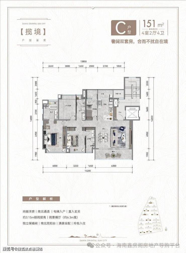C户型:约151平,4房2厅4卫