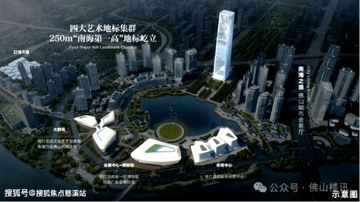 从效果图可以看到,灯湖天峯靠近大剧院、会展中心+博物馆、体育中心、南海之眼等地标建筑,地理位置可谓优秀。