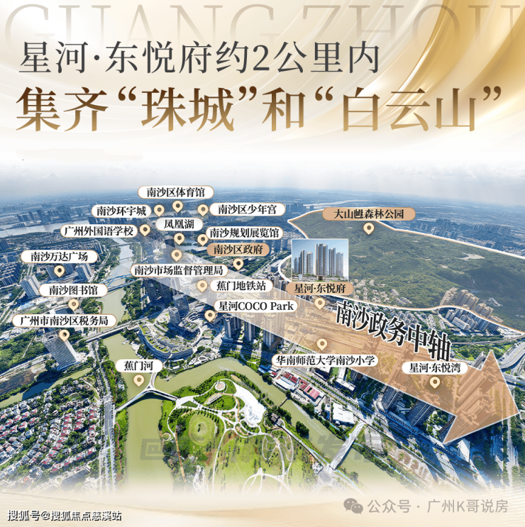 南沙区政府、三馆一宫、南沙中心医院、南沙外国语学、蕉门地铁站等,半数以上的高端市政和配套资源都汇聚于此。