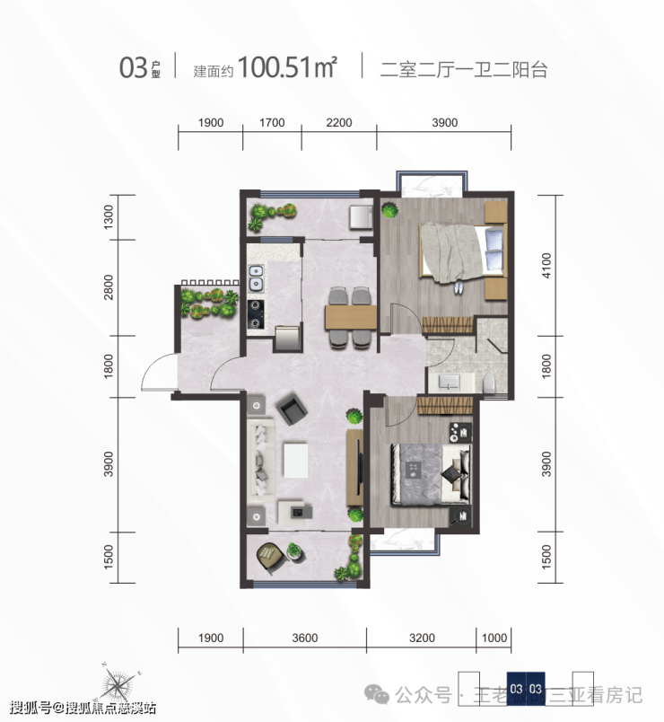 一室一厅一卫一阳台03户型丨建筑面积约100.51、100.73㎡