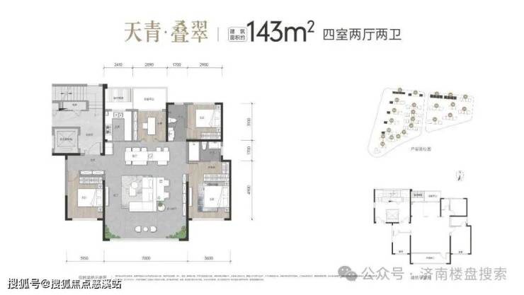 约143㎡四室两厅两卫:私享入户电梯前厅;约13.7米超大南向面宽,巨幅落地窗,LDKB一体;约7米横厅连开敞式阳台,北向设备平台空间,约3.6米宽境主卧。