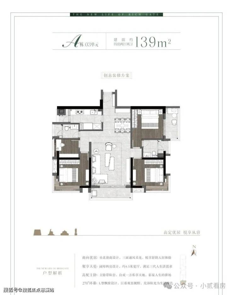 A栋03单元三面采光三阳台139㎡稀缺南向四房