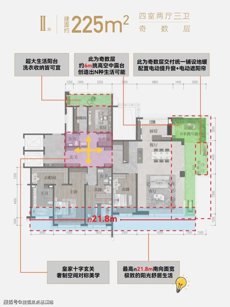 中寰悦府,以奇偶错层设计、最高约6.4m局部挑高的空中庭院、270°三面环幕全景舱视野、南向约21.8mIMAX级巨幕观景面宽,打造一座“悬浮的岛屿”。室内与室外、城市与自然无界相连,行止于都市森林之上,星河岁月落于窗前。当LDK产品被普遍复制,中寰悦府用约100㎡的LDKBG空间布局,颠覆传统居住方式,让生活更隐逸与奢华,万般生活理想在此达成哲学共识。