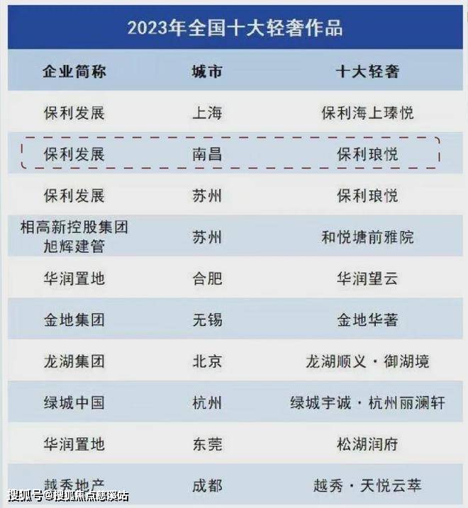 2023年11月底,克而瑞(中国房产权威信息综合服务商)发布了年度房产成绩榜单,保利琅悦成功斩获《中国十大轻奢作品》荣誉!