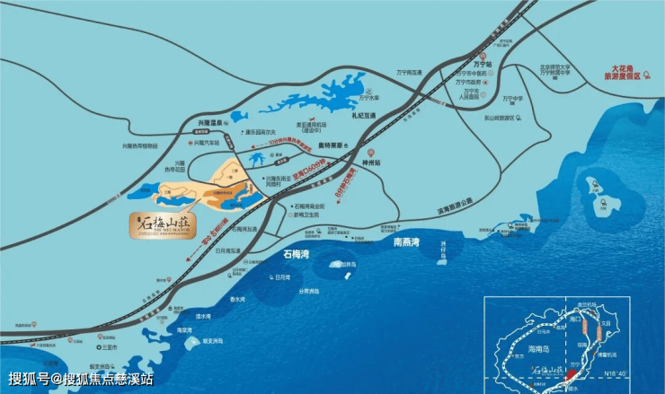 便捷交通:距高铁万宁站约19公里,距神州站仅约4公里;双出口接入海南环岛高速。高速、环岛、高铁、机场多维交通,玩转全岛。