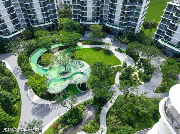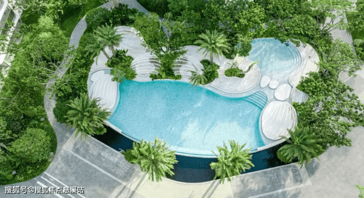 园林景观以“云、水、林”为设计脉络,中央静卧的“云朵镜池”蜿蜒流转,天光云影倒映水面,营造出“如云在天,皆若空游无所依”的空灵意境;亲水云台、星光吧台、儿童主题乐园等多元场景,在热带丛林的掩映下,演绎出自然与生活交融的热带水岸诗篇。