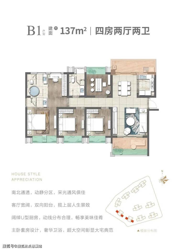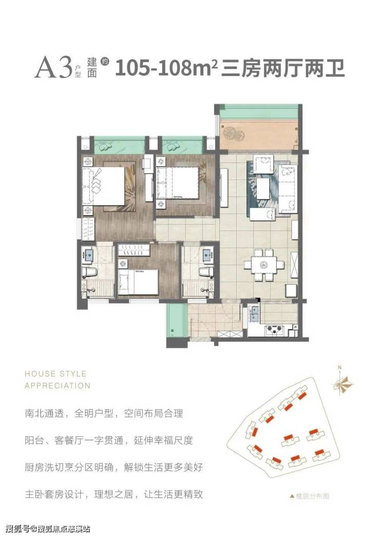 在售户型:103,105平米三房两厅两卫,137平米四房两厅两卫