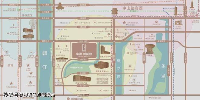 与江西首座大悦城(在建中)、朝阳天虹购物中心、西湖万达广场近40万㎡商业航母比邻而立,约500m内坐拥三大商业地标