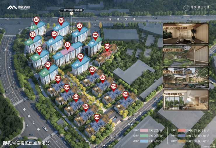 项目占地50亩,共规划20栋住宅,其中10栋为8-9F洋房(125-149平),10栋为4F上下叠墅(161-178平),254套。
