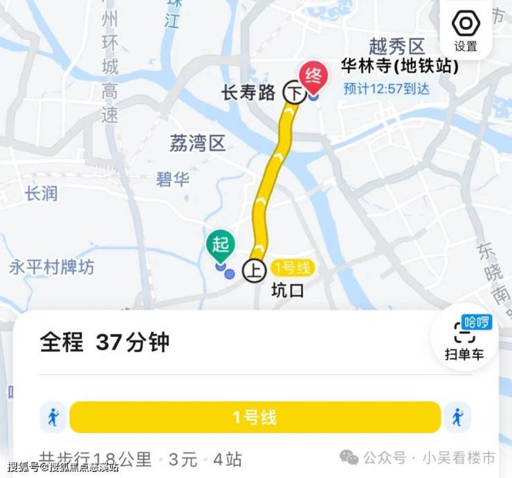 地铁去往华林寺:出小区步行至坑口站,乘坐1号线到华林寺,全程4个站,耗时37分钟左右。