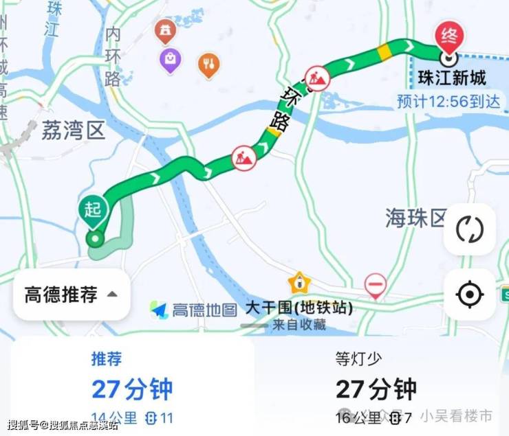 自驾去珠江新城:东漖北路转花蕾路至洲头咀隧道,再转内环路,全程14公里,耗时27分钟左右。