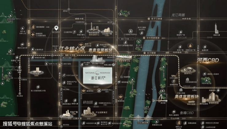 江核青奥板块位于国家级新区、自贸区、核心区及青奥板块四区叠加处,从发展轨迹来看,江核CBD对应河西北部、隧道口板块对应河西中部、青奥板块对应河西奥体新城以及研创园板块对应河西鱼嘴。青奥板块与河西奥体新城发展模式如出一辙,同享金融中芯的产业配套及产业高地的人才导入,都位于价值高地的宜居中芯。