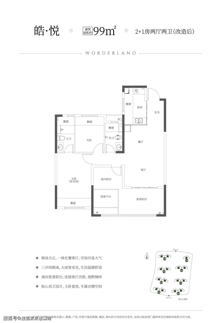 首发新规建筑面积约99㎡2+1房、约3.9m客厅开间、三开间朝南、得房率约102%
