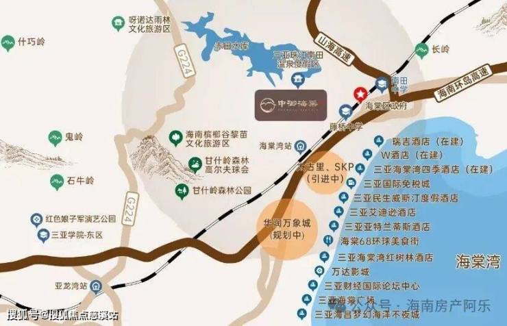海棠湾是海南唯一一个由国家规划打造的度假湾区,定位为国家海岸,22公里海岸线汇聚千亿配套,32家超五星级酒店、4大主题乐园、5大高尔夫球场、310解放军医院海南分院、亚洲最大单体免税店、华润超级万象城、北京华联SKP等资源环伺。中御海棠项目位于海棠湾南田片区,坐享东线高速、山海高速、机场、高铁、城际公交等三维立体交通网,度假生活出行四通八达。