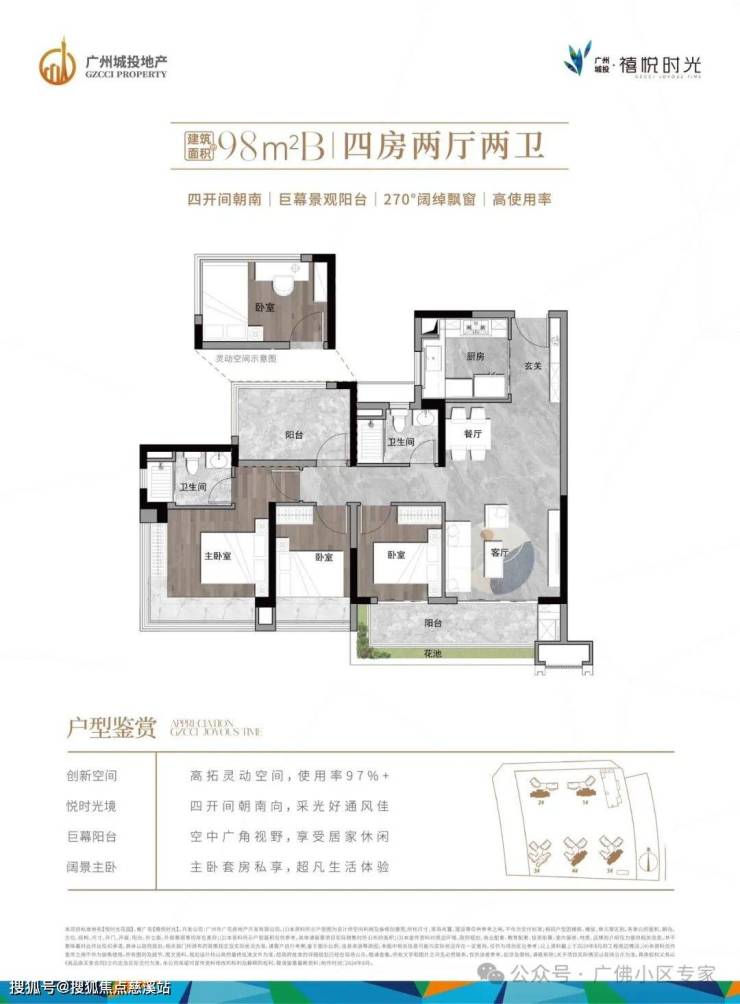 首推户型 | 建面约98㎡|B 4房2厅2卫