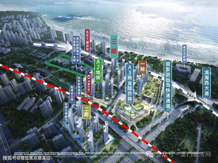 除了地铁,BRT 快 2/5 线、滨海西大道以及规划中的同安进出岛通道也都在门口,交通路网十分发达。我实测过,早高峰开车从这儿到岛内软件园大概 35 分钟,等地铁通了,通勤时间还能进一步缩短。