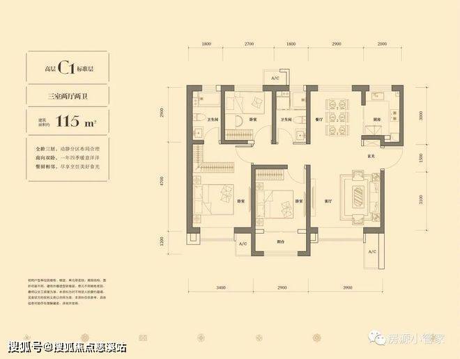 ·【高层C1】建面约115㎡(三室两厅两卫)