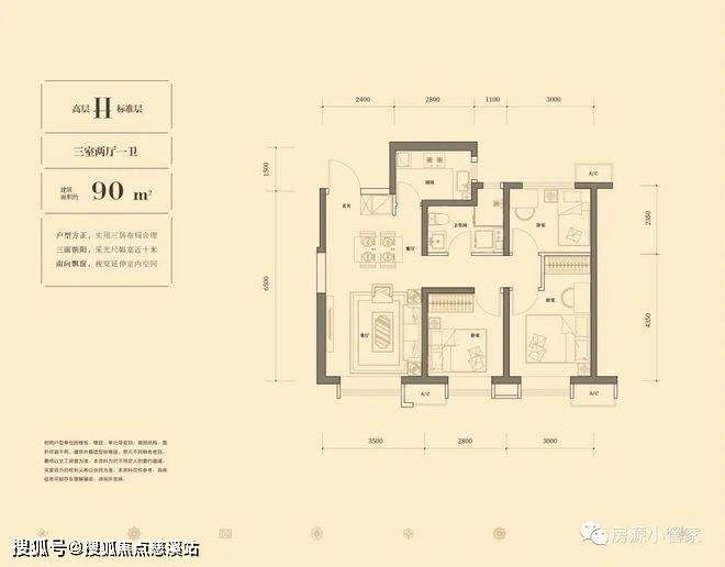 90平米三室:230-254万