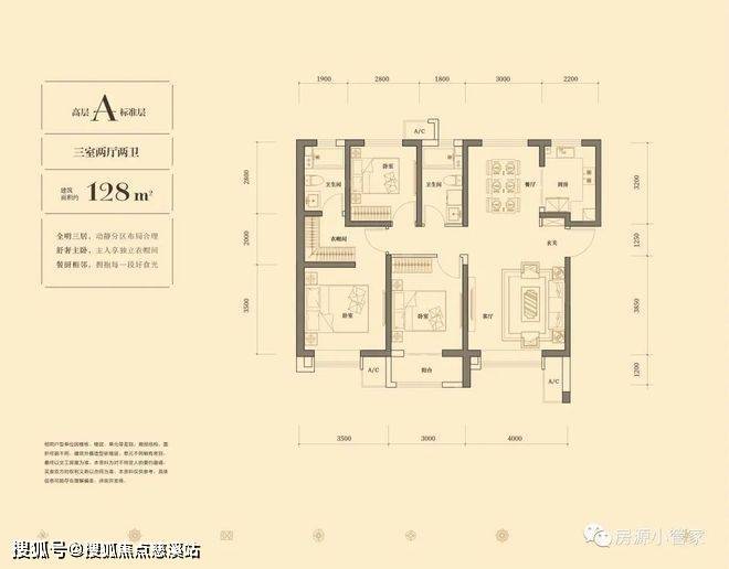 ·【高层A】建面约128㎡(三室两厅两卫)