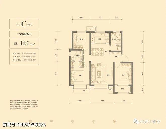 ·【高层C】建面约115㎡(三室两厅两卫)