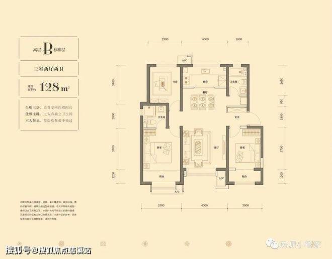128平米三室:320-369万