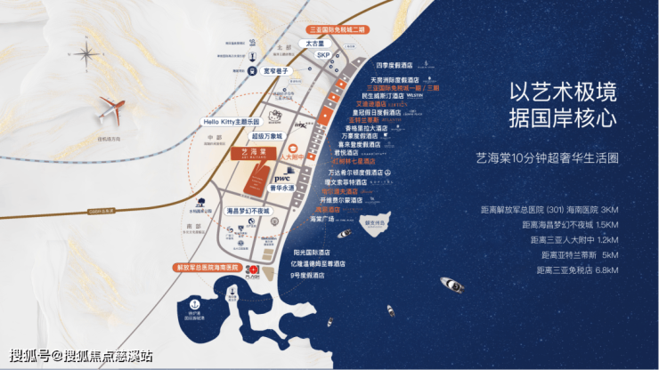 【国家海岸】海棠湾"国家海岸",海南自由贸易港最后一块高品质的海滨资源,是海南自由贸易港打造建设国际旅游消费中心的样板区域,是中国海滨度假区升级拓展的NO.1重点工程,是一个世界级的旅游度假区和度假天堂,承载国家热带滨海旅游品牌形象。海棠湾万亿级的娱乐、休闲、康养、购物、教育等资源配套已然成为世界级超级湾区,而湾区一线配套也形成了艺海棠10分钟超奢华生活圈