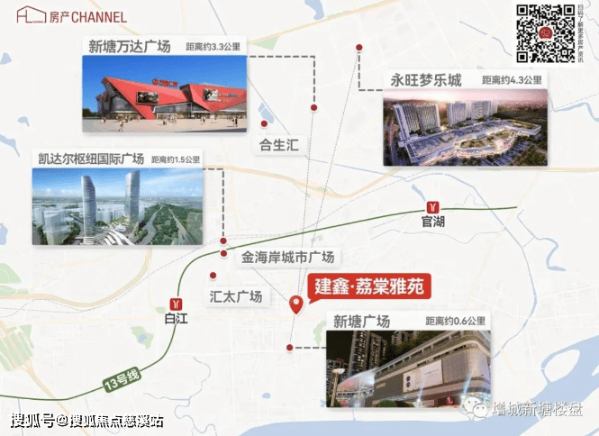 金海岸城市广场(大润发)、汇太广场、凯达尔枢纽国际广场、新塘广场(华润万家)、永旺梦乐城(华南最大)、万达广场、合生汇七大商业综合体,以平均约700米一座商业地标的密度,提质万千璀璨(此距离为百度地图提索距离,因路况或路线选择等不同,可能存在差异,请以实际为准)