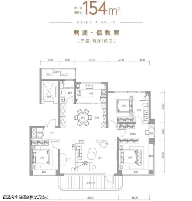 再通过南向飘窗台、设备平台、观景平台等方式,实现更大的空间实用效率。