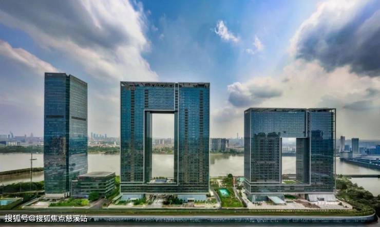 从珠江往北看,三栋150~208米的建筑排成“001”的造型,颇具昭示感。