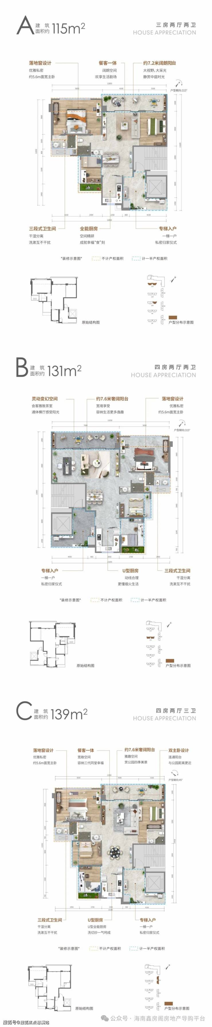 建筑面积约115-139㎡纯板住宅