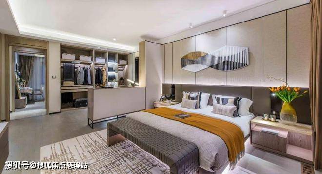 主卧套房的设计更是尺度拉满,配置超大独立衣帽间,可满足办公、化妆等功能,卫生间更是配置了阳光浴缸,这几乎是高奢行政酒店套房才有的规格。