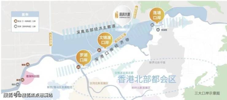 罗湖口岸、莲塘口岸、文锦渡口岸,三大口岸簇拥,链接深港