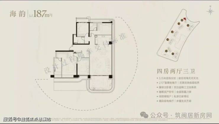 全区仅274户纯粹圈层大宅,最低188㎡仅21套;主力200-356㎡共237套;鼎豪之王430㎡ 环幕湾海270°,仅仅16套,臻贵之极。