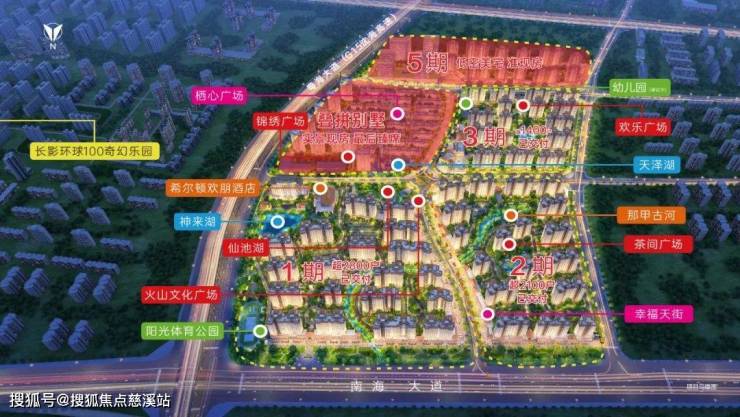 合甲·南海幸福汇五期作为项目最后一期,容积率低至1.5,比肩别墅社区的通透体验。楼间距约50-70米,全南向阳光社区,在海口市场中少见。园林采用“一环二轴多组团” 布局,阳光草坪、环形步道、亲子泳池,四季有景。