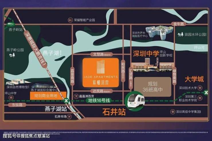 深圳华润紫樾润府项目位于坪山石井街道,属于燕子湖板块,该总占地面积约1.64万平,总建筑面积约8.06万平,绿化率40%,