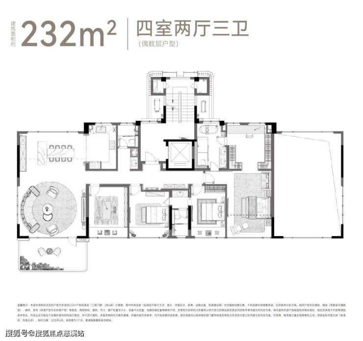 建面约232㎡洋房户型