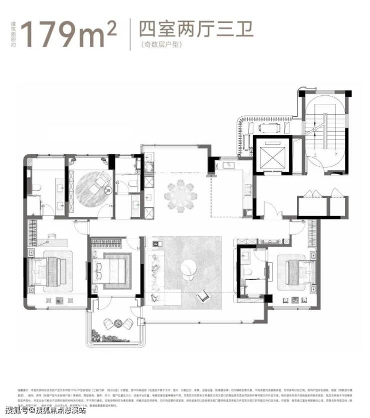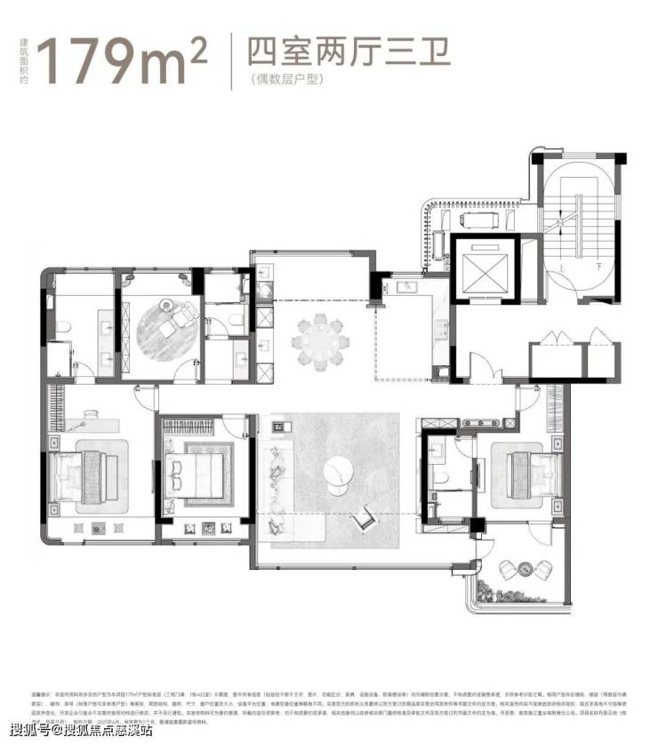 建面约179㎡四室两厅三卫
