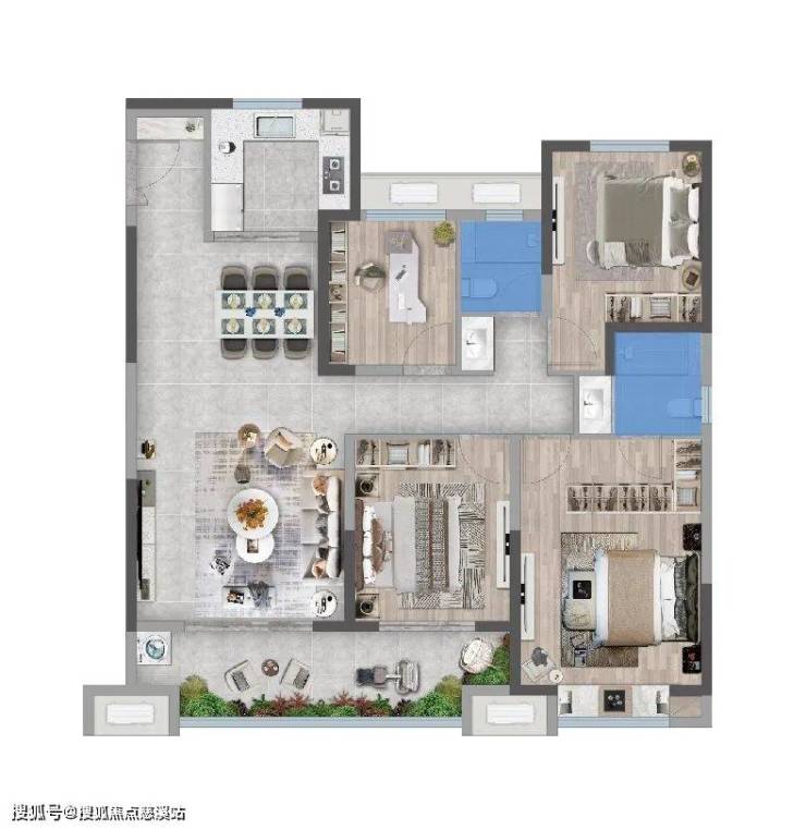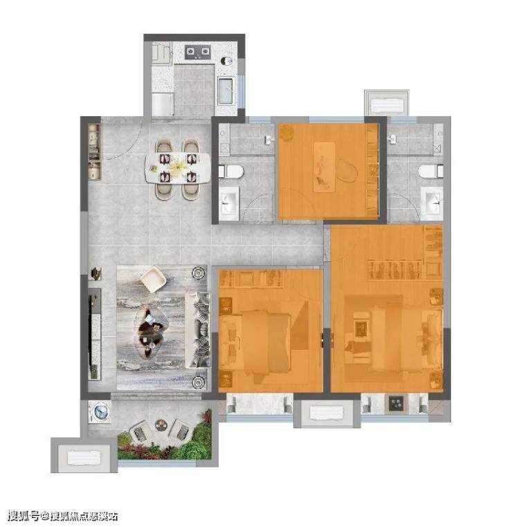 建面约111㎡全能三房,主卧套房、次卧、书房各司其职,告别"一房"难求的尴尬。