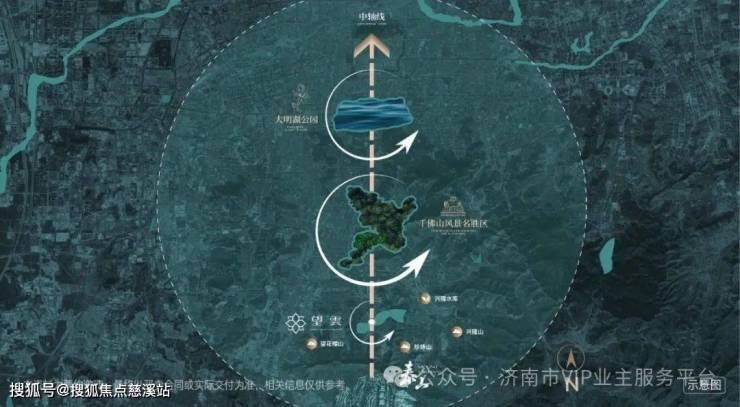 项目位于大明湖-千佛山-泰山的泉城南北特色风貌轴南段,地块肌理形如天然如意,周边三山一水环绕,围合宜养宜居的生态福地。