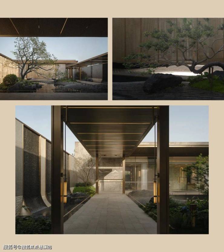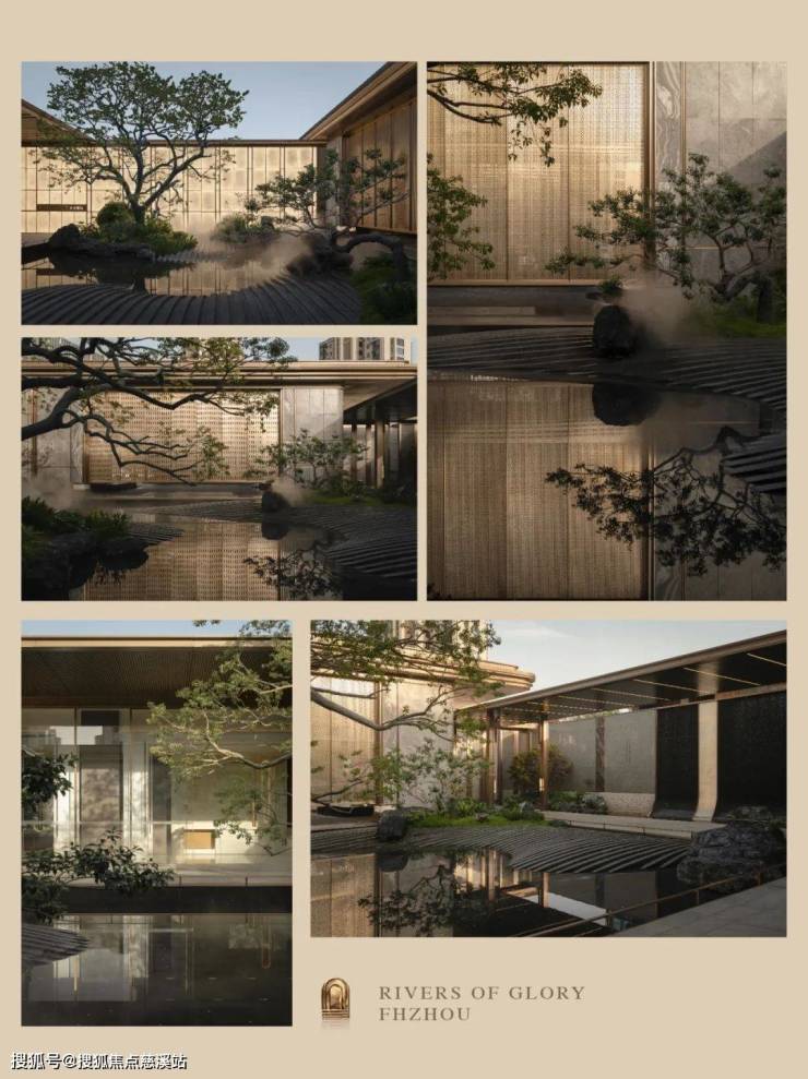 廊回水绕,浮光跃金,整个三进水院空间,营造着漫步归家亲水体验及水林交融洽谈氛围,成就了未来高品质人居生活的典范。