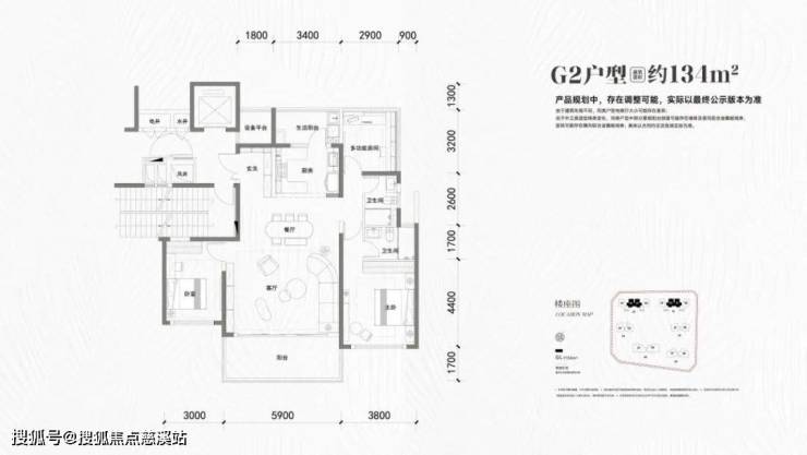 134㎡三房两厅两卫(G1户型,大边户)